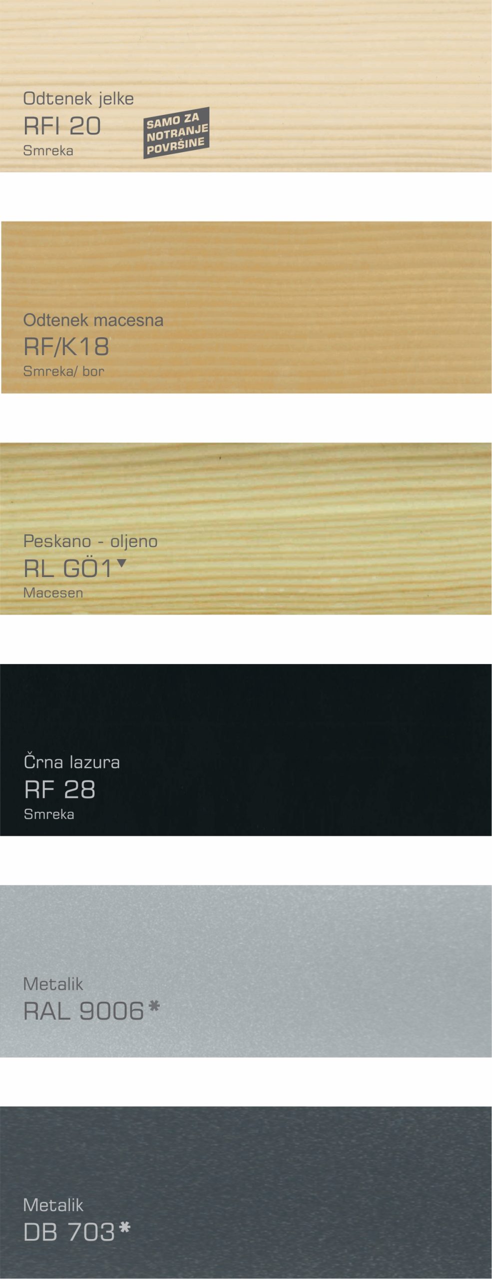 Posodobili smo našo barvno karto za les in dodali šest novih, atraktivnih odtenkov, ki omogočajo še večjo prilagodljivost pri izbiri lesenih in les/ aluminij oken in vrat: