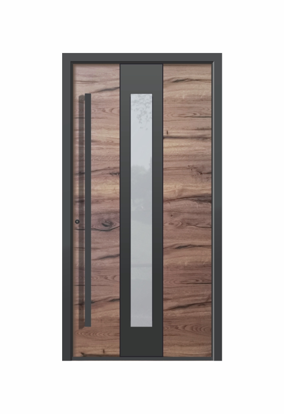 Zunanja stran krila je prekrita s furnirjem, ki prinaša toplino lesa in unikatno strukturo vsakih vrat. Na voljo v petih različicah furnirja.