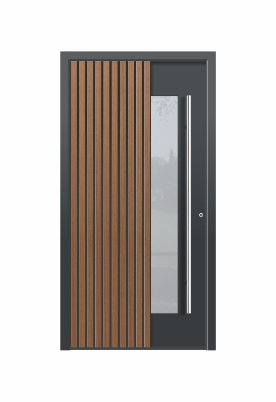 Na zunanji strani so pritrjene aluminijaste letve, ki ustvarjajo privlačen 3D videz vrat.